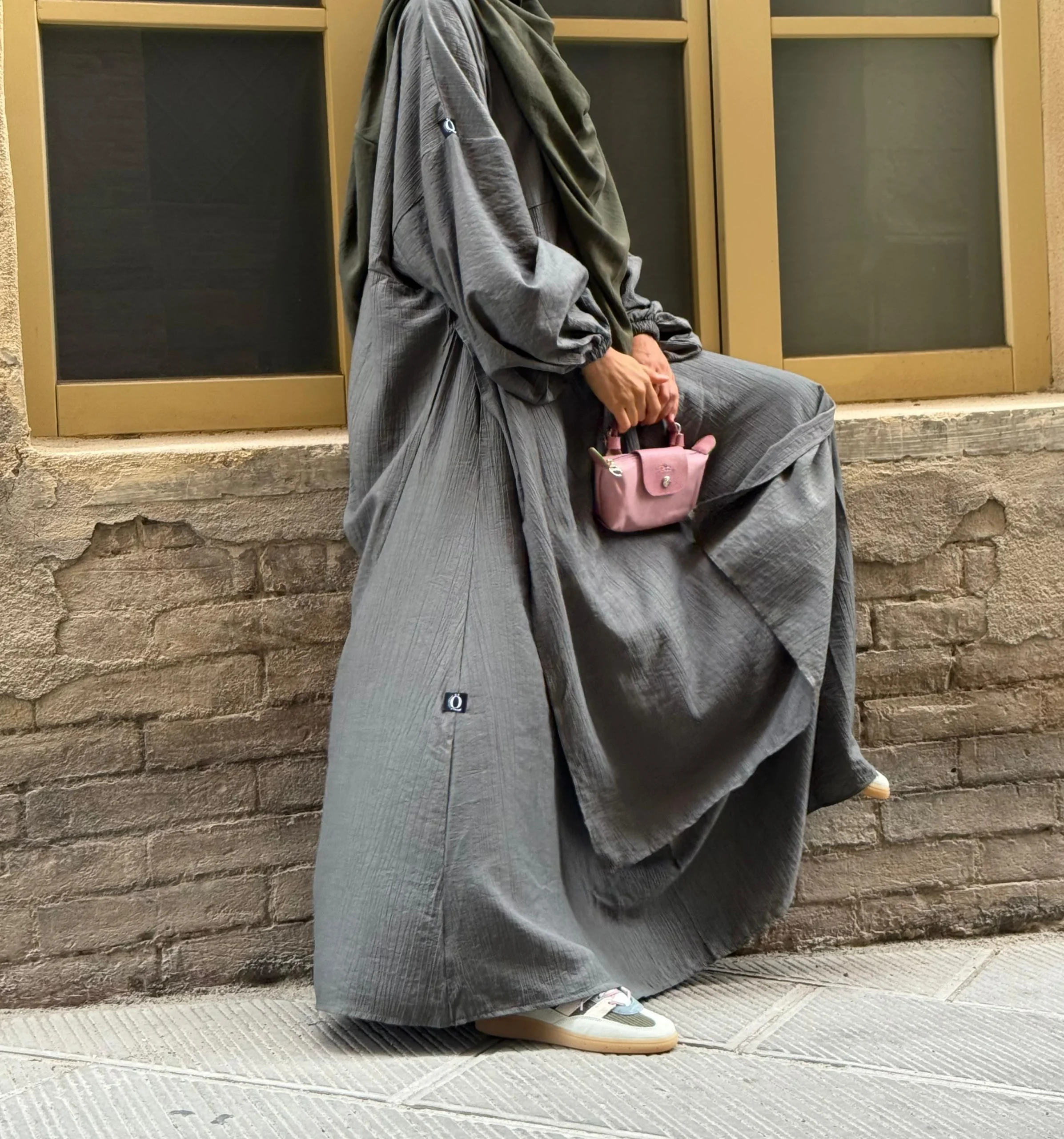 Côté détails : les manches ont un élastique discret, un zip d’allaitement pratique se fond dans le design, et de larges fentes sur les côtés offrent toute la liberté de mouvement qu’il faut. La jupe, elle, est équipée de poches zippées bien pratiques pour vos essentiels.
